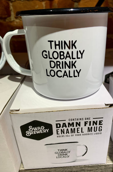 Enamel Mug by Swag Brewery - available in 4 styles - "The Good Shit", "Probably Beer", "Think Globally Drink Locally" and "May Contain Alcohol"